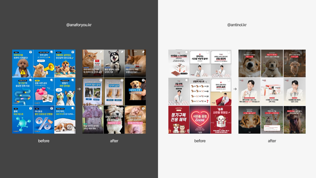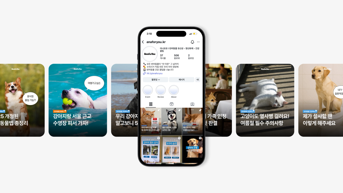 반려동물의 건강을 위한 영양제 브랜드 안티놀래피드와 아나포유의 브랜드 커뮤니케이션 프로젝트입니다. ‘반려동물과 함께하는 건강한 일상’이라는 브랜드 가치를 기반으로, 커뮤니티형 콘텐츠와 진정성 있는 메시지를 통해 고객과의 관계를 강화하고 지속적인 신뢰와 공감을 이끌어냅니다.