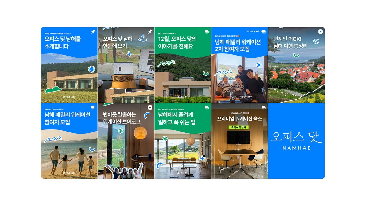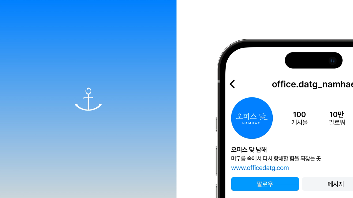 남해의 워케이션 숙소 ‘소도읖’의 리브랜딩 프로젝트입니다. 머무름을 통해 자신만의 속도를 회복하는 공간으로 새롭게 정의하기 위해 ‘오피스닻'이라는 새로운 이름을 짓고 언어부터 비주얼까지 브랜드 정체성을 수립하였습니다. 삶과 일을 항해에 비유하며, ‘잠시 멈추는 힘’ 과 ‘다시 나아가는 용기’ 를 브랜드 철학으로 담았습니다. 브랜드 스토리와 슬로건, 로고 및 비주얼 아이덴티티를 재정비해 워케이션 숙소의 강점을 강화하였습니다.